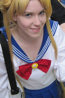 The wig was bought styled as Miku Hatsune and restyled for Amewarashi by me and a friend. The reason the wig is but is because I based my dress on the manga version were Amewarashi is coloured with blue hair instead of the anime's red. More here --> Link. Shoes, socks and gloves were bought.